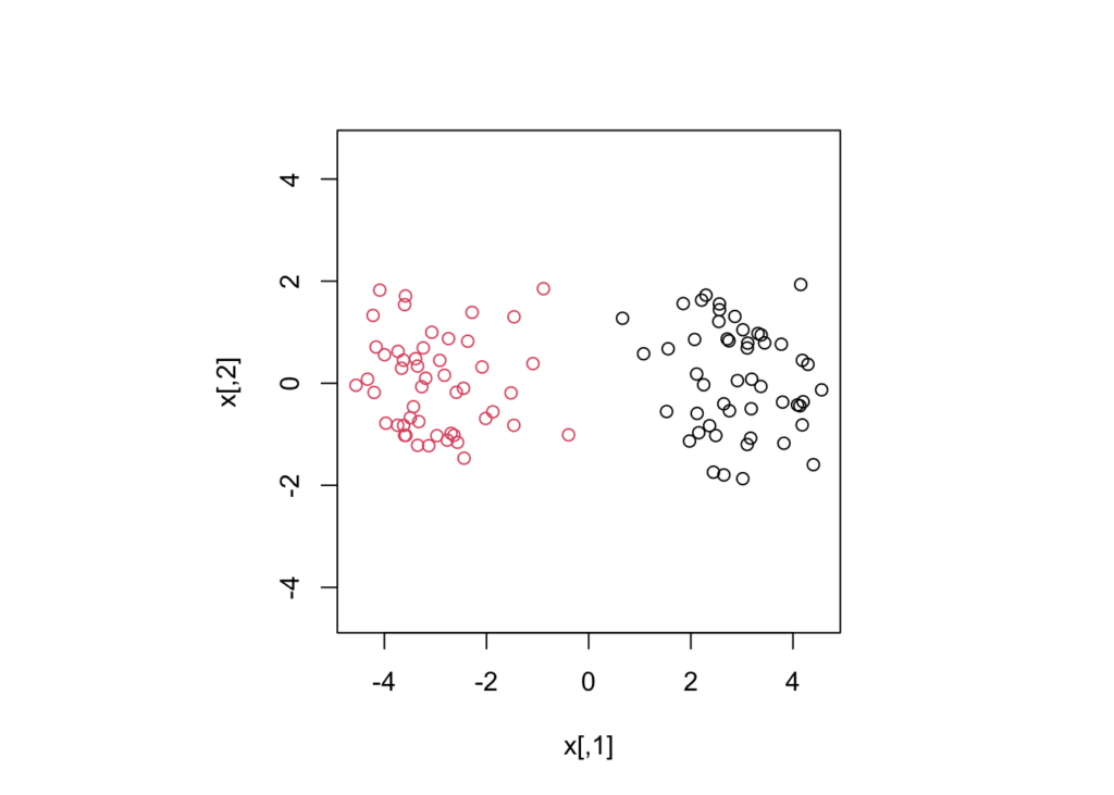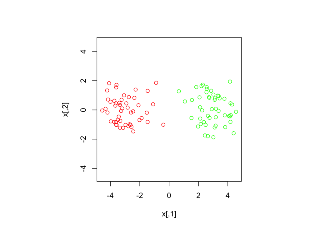 km <- kmeans(x, centers = 2)