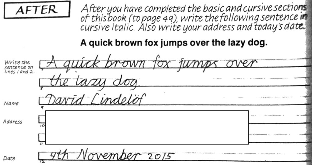 Some years ago I became interested in improving my own handwriting and came across the Getty-Dubay handwriting system. It’s a self study guide, a beautiful book (entirely handwritten itself!) that teaches you two handwriting systems, an italic one and a cursive one. Here’s a sample of my handwriting before the course and after: